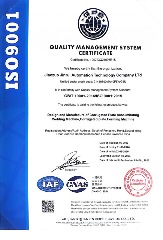 質(zhì)量管理體系認證證書(shū)(英文版)