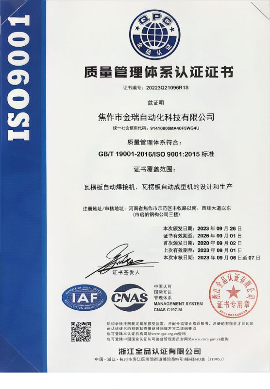 質(zhì)量管理體系認證證書(shū)(英文版)